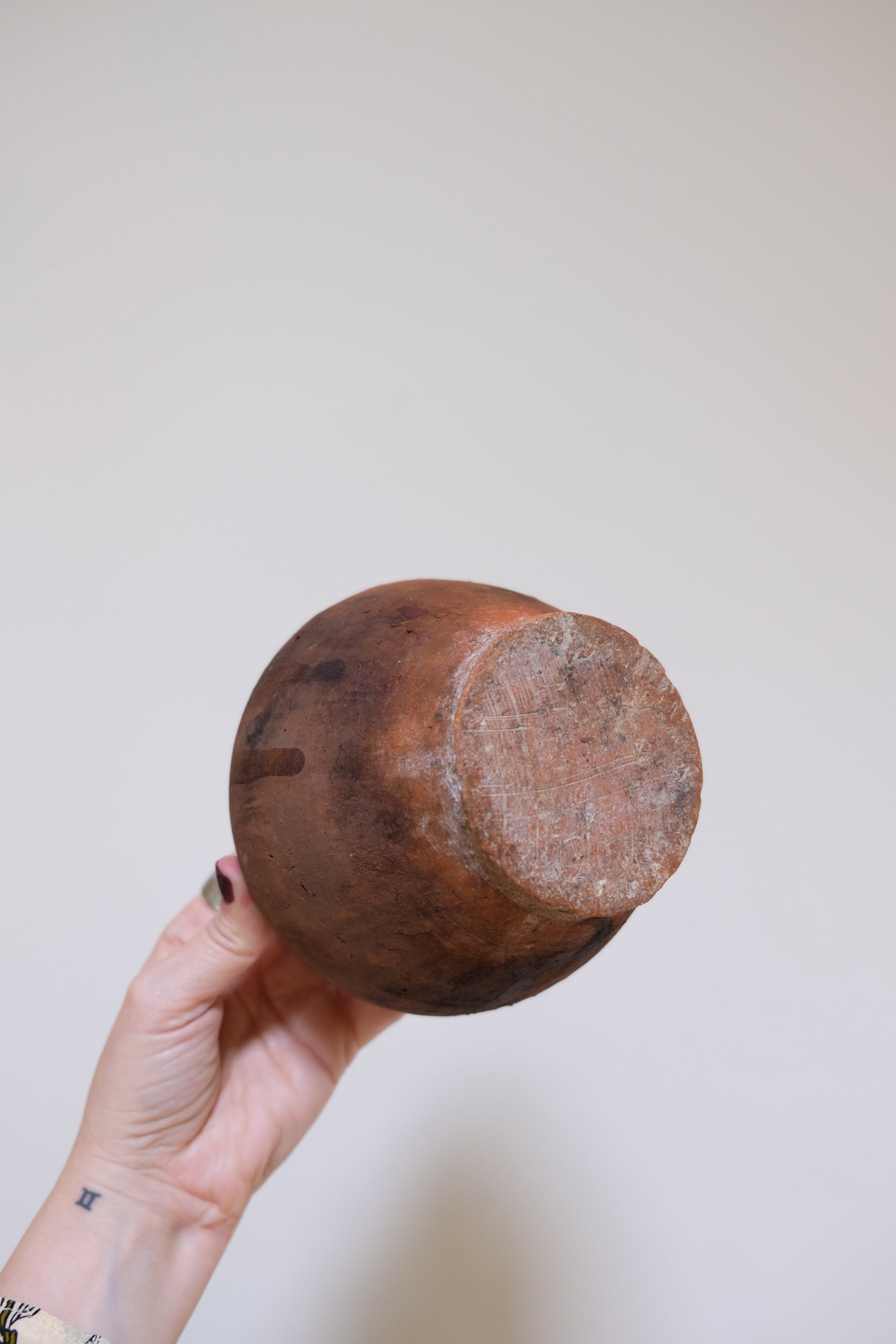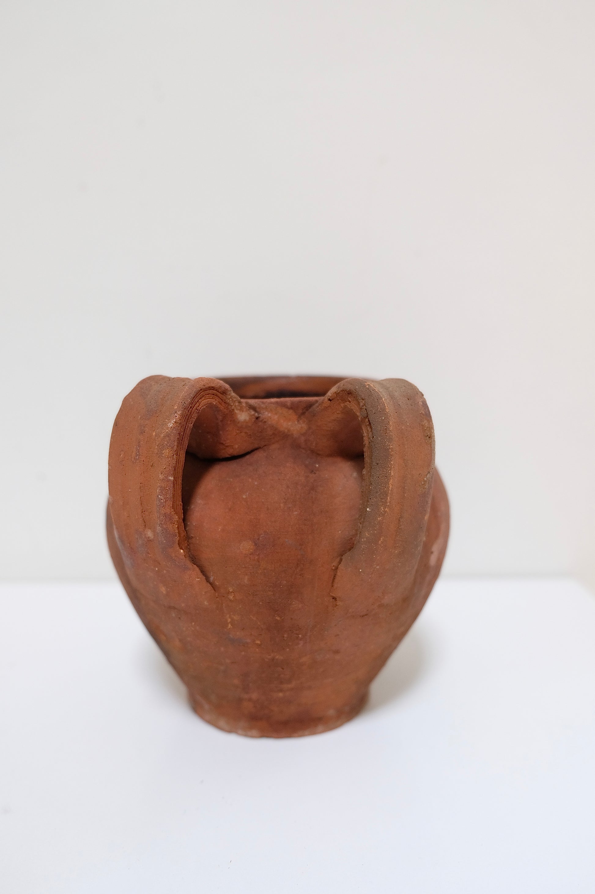 Rustic and sculptural, this fire-glazed terracotta pot with double handles brings earthy warmth to any space. Its worn surface tells its story, while the form makes it equally at home holding dried stems or standing as a sculptural accent. 6” x 6.5”