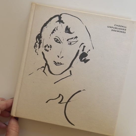 A rare art volume showcasing Marc Chagall’s previously unseen sketches and studies. Minimal cream cloth cover with bold black line art — collectible and display-worthy.