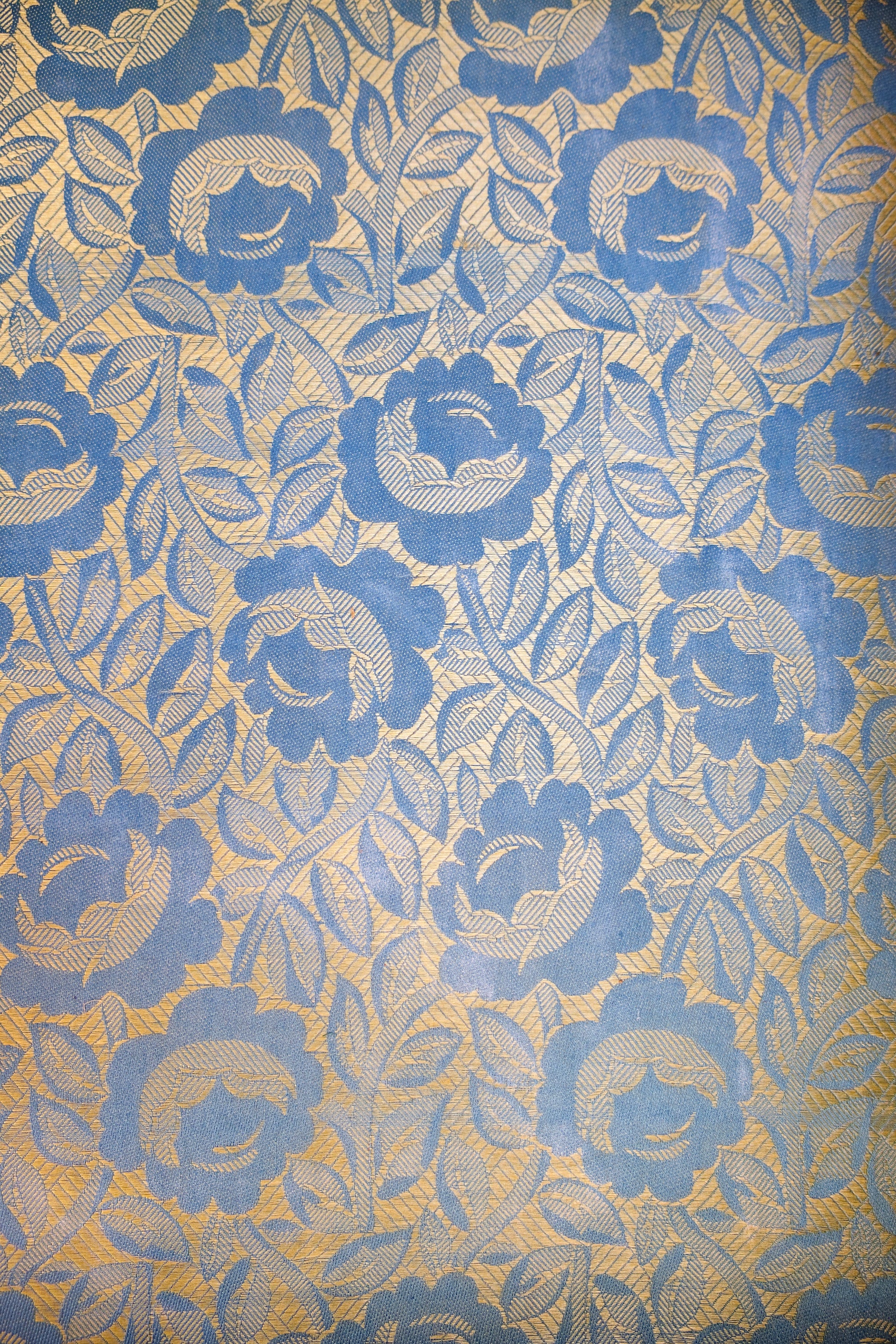 The interior is lined with a stunning blue and gold silk floral pattern that adds a touch of luxury, while the hinge is in great shape to keep the lid propped open for display. With just the right amount of age to give it character, this box is perfect for storing keepsakes, jewelry, items on a coffee table like matches/coasters/remotes, or even as a standalone statement piece.