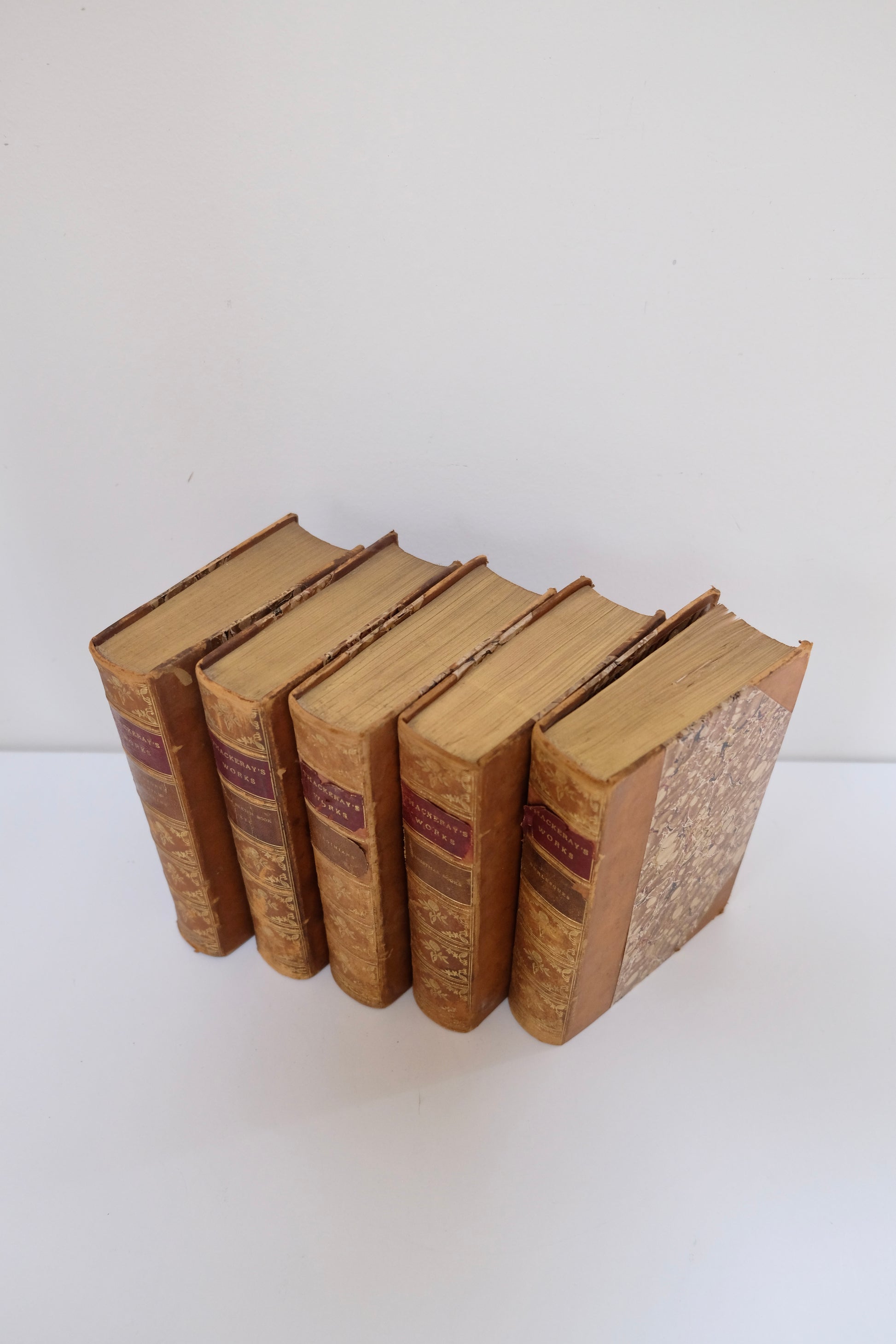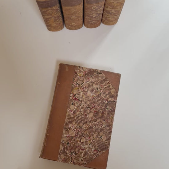 The marbled boards, illustrations sprinkled throughout, and warm, timeworn leather make this set a beautiful styling piece for book lovers and collectors alike. Late 1800s.