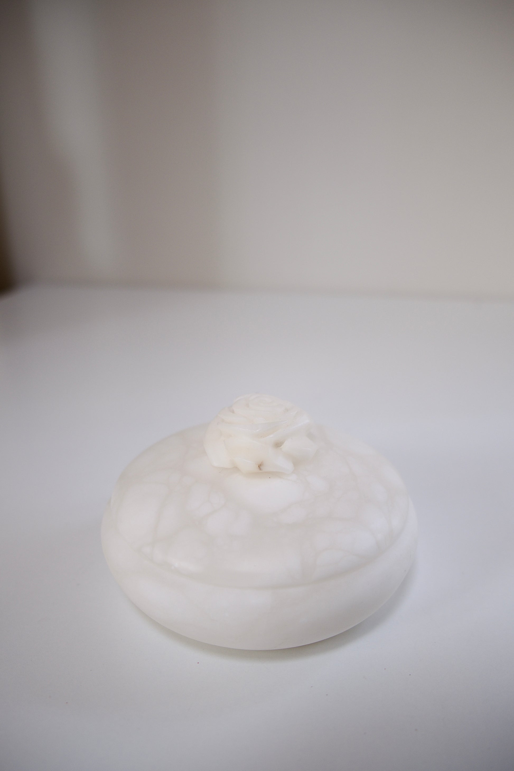 One of my favorites this week. Hand-carved rose top with a lovely matte finish and soft ivory tone. 5” x 3”