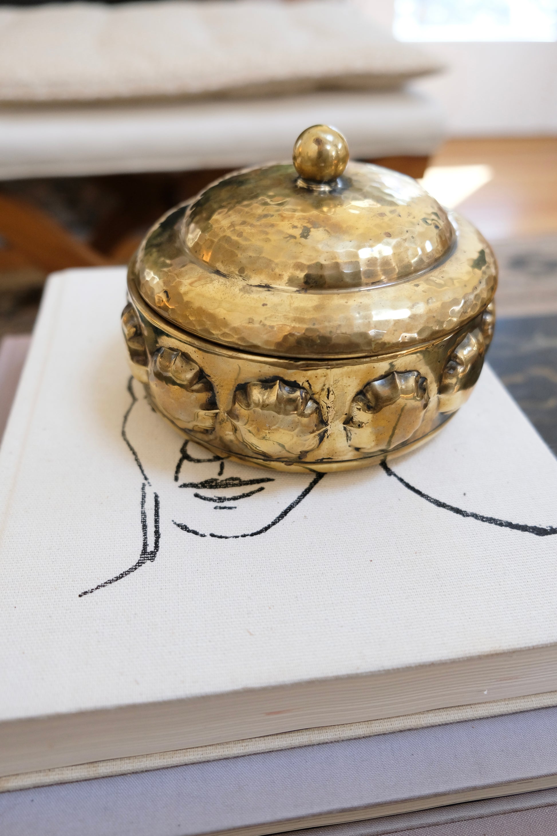 Vintage Hammered Brass Lidded Trinket Box