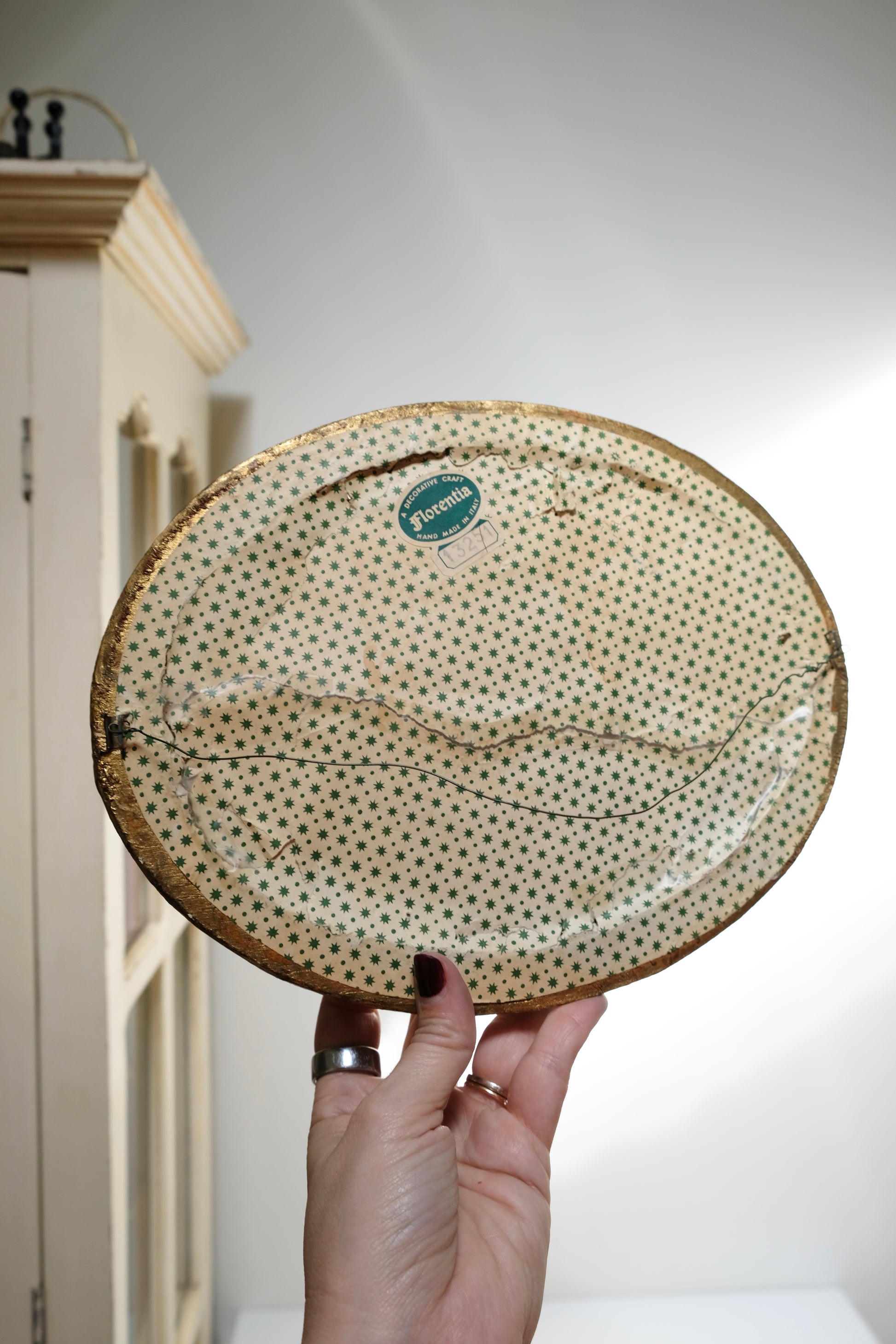 A. Medium Oval Mirror – Florentine, made in Italy. Classic oval shape with floral detailing, 11” x 8”. $42 + ship