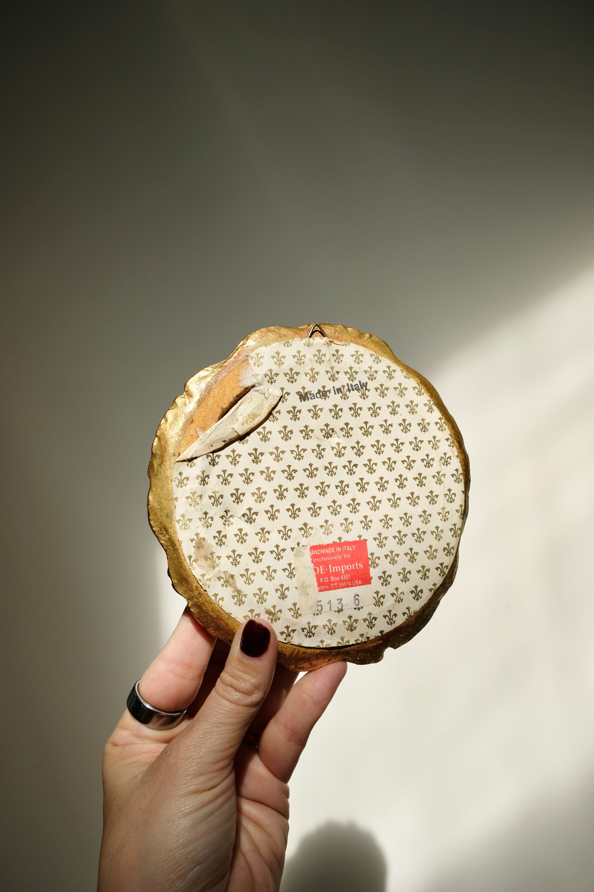 B. Small Circle Mirror – Florentine, made in Italy. Sweet size at 5.5” diameter, perfect for layering. $32 + ship