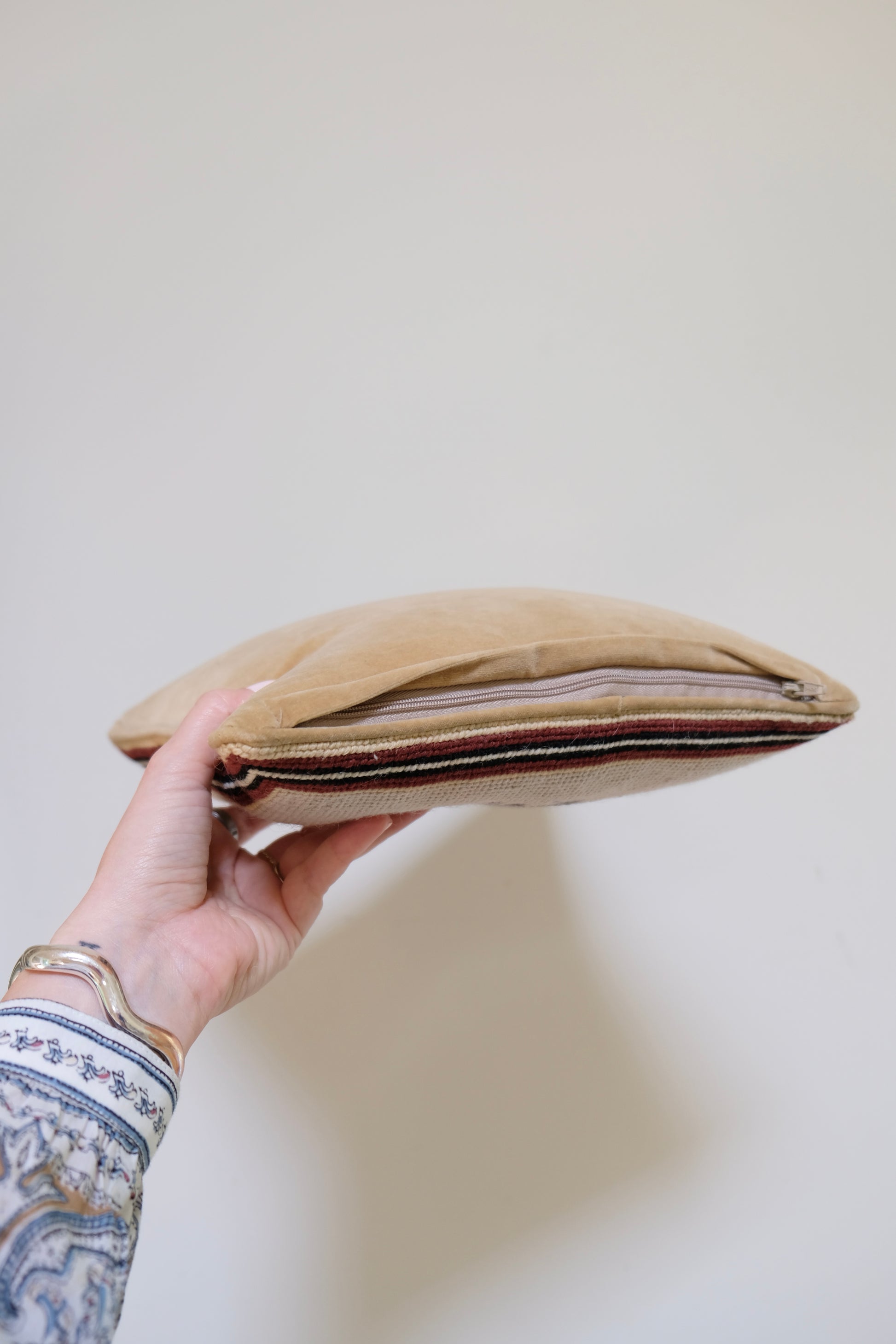 Dog lovers, this one’s for you. The sweetest expression and beautiful hand-stitched detail. Soft corduroy back with zipper.
