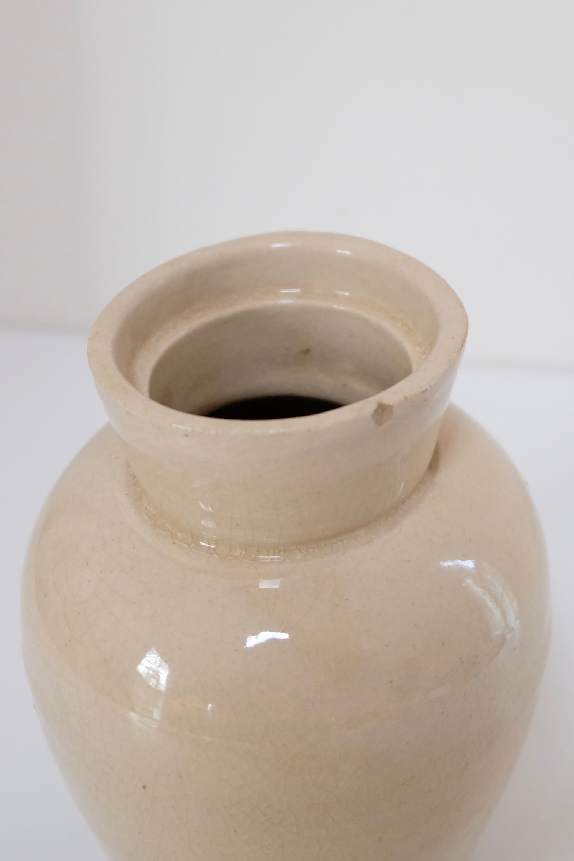 Soft cream glaze and timeless shape make this such a versatile piece. Beautiful alone or with a simple stem. Small chip on lip as photographed. 7” tall