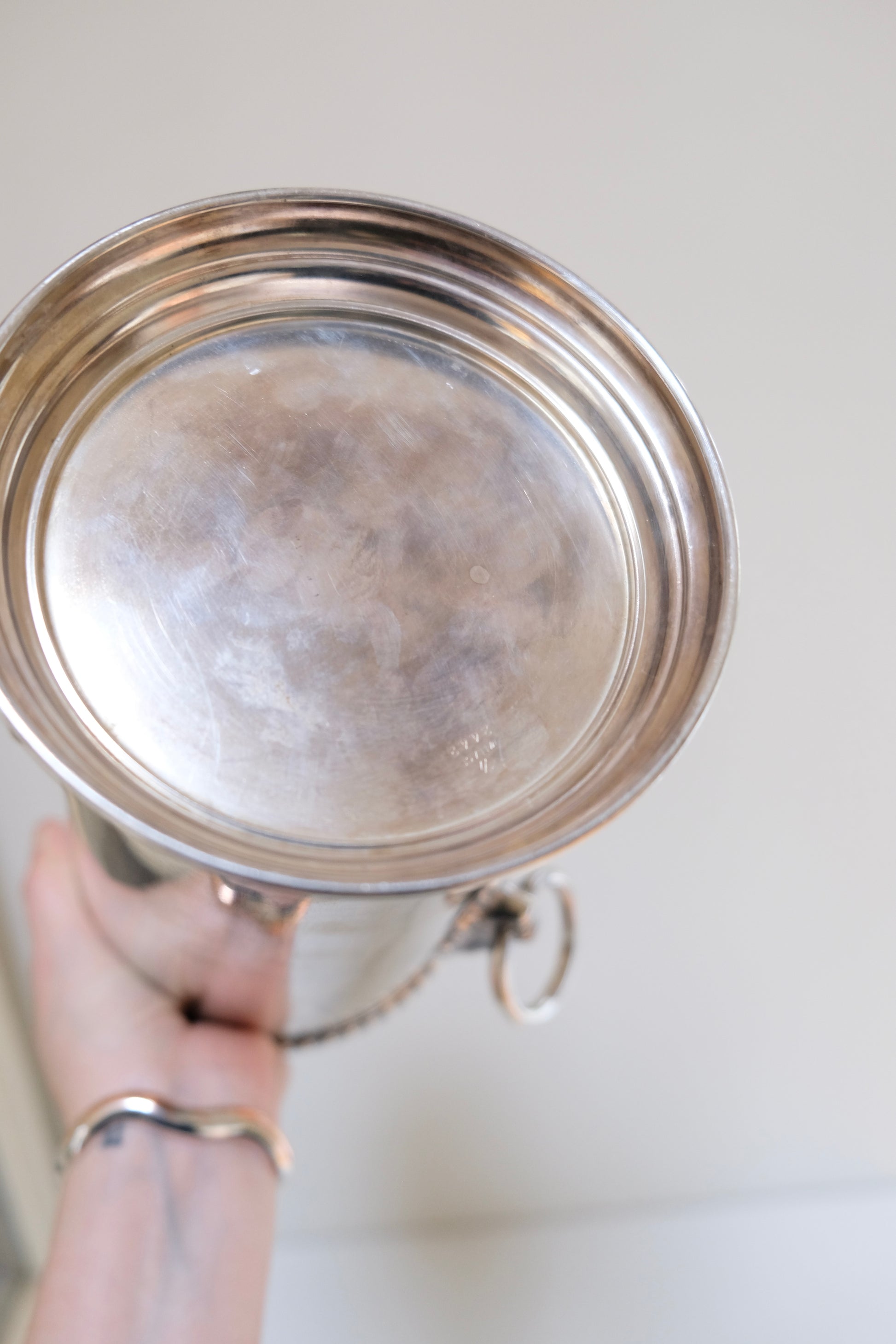 A classic silver plated Wallace wine bucket featuring bold lion head rings on each side and a beautifully detailed rim. This one shines for holiday hosting, New Year’s celebrations, or styled as a vase for winter greens or flowers. Heavy, elegant, and such a good timeless piece to keep out year round.